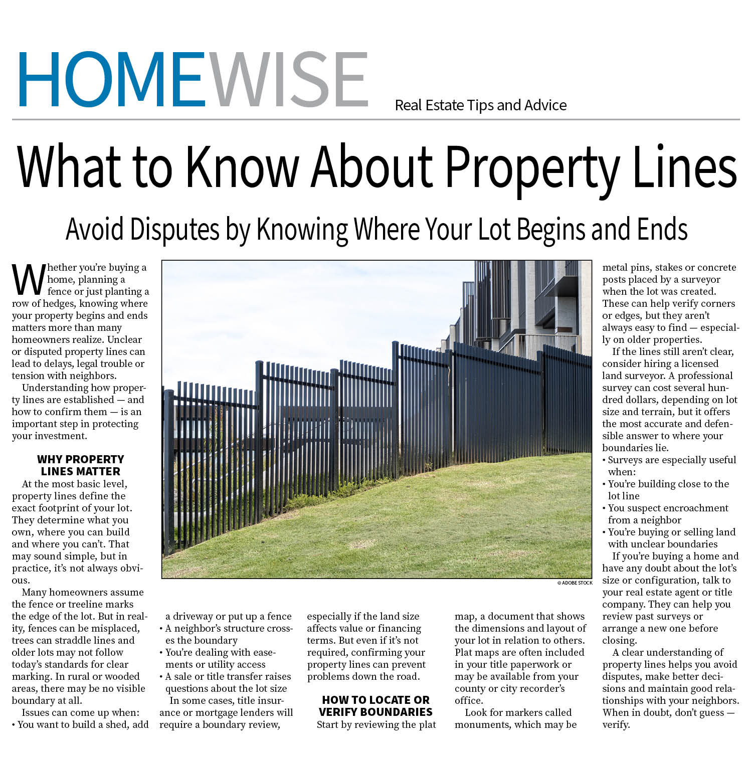 Our HomeWise page is the perfect companion to your daily or weekly real estate section. Available in tab and broadsheet sizes, this page covers real estate basics with a different topic each week devoted to practical financial considerations, buying and selling, and home improvement. The broadsheet page includes space for advertising at the bottom, a great place for a local agent to see his or her name and face, as well as a glossary of real estate terms.